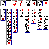 場のカードと数字が1違うカードを重ねていくソリティアゲーム。 先に紹介した「3-Peaks」と同じルールです。 ゲームに関する細かな設定は何もできませんし、日本語版もありません。 クリアしたときに、山に残っているカード枚数によってボーナスが加算されるシステムです。 [2009/11/01追加]Webサイトが無くなっているようです。 | |