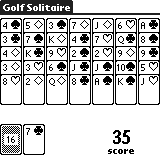 フリーのソリティア。 筆者がPalmを使いはじめた頃は必ず入れていたソフトです。 現在はカラー化もされています。 Windowsに付属のソリティアと同じ、クロンダイクが遊べます。 物足りない人は、smallWareのサイトにあるシェアウェア版をチェック。 smallWare Solitaire1(14種類入り/10ドル)、smallWare Solitaire2(10種類入り/10ドル)、smallWare Solitaire Bundle(1+2のパック/15ドル)があります。 [2009/11/01追加]現在は「Sol Free Solitaire」という名前で5種類のゲームがフリーで遊べるようになっています。有料版は「Solebon」(24.99ドル)という名前で50種類のゲームが遊べるようになっています。フリー版はPalmOS2.0でも動くファイルも「Older Version」として提供されているところがいかにも老舗といった感じがします。 | |