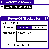 バックアップツール。 外部メモリーカードへのバックアップは、スケジュールを設定可能。 HotSync時にバックアップされるファイルを自分で設定し直せるほか、一度だけ強制的にバックアップをパソコン側に取ることも可能。 外部メモリーカードだけでなく、HotSyncでの設定にも対応しているため、幅広い機種で使えるようです(筆者未確認)。 PalmOS3(外部カードではなくPalm Desktopへの強制バックアップなど)、PalmOS5にも対応。 | |
